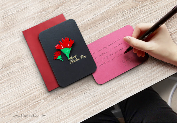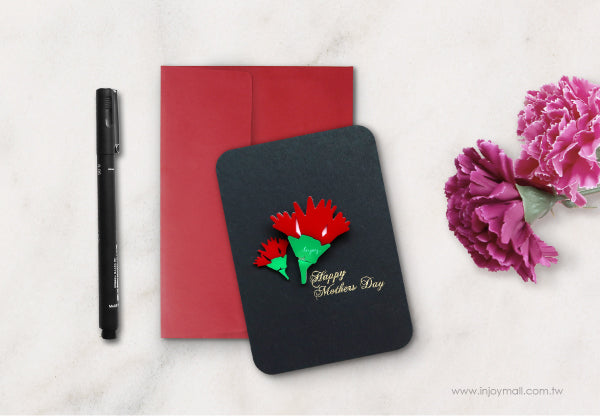 噓…卡片裡其實還藏有小心機,讓小編來告訴你!不只是卡片的設計,讓卡片不單單只能書寫,也可當作飾品,卡片上的康乃馨更能作為別針自由取下,這時就該你表現啦~親手為媽媽別上別針吧😁