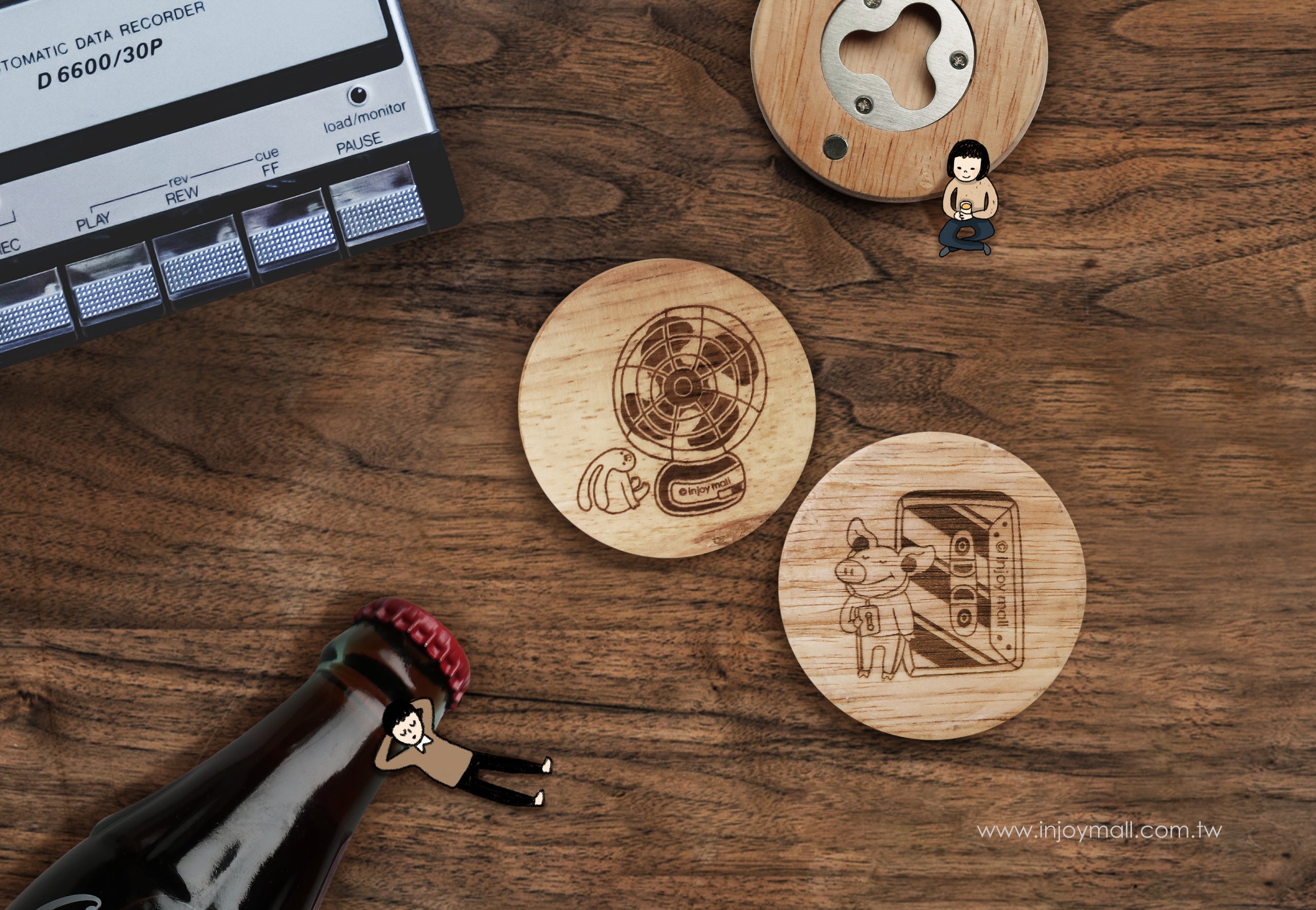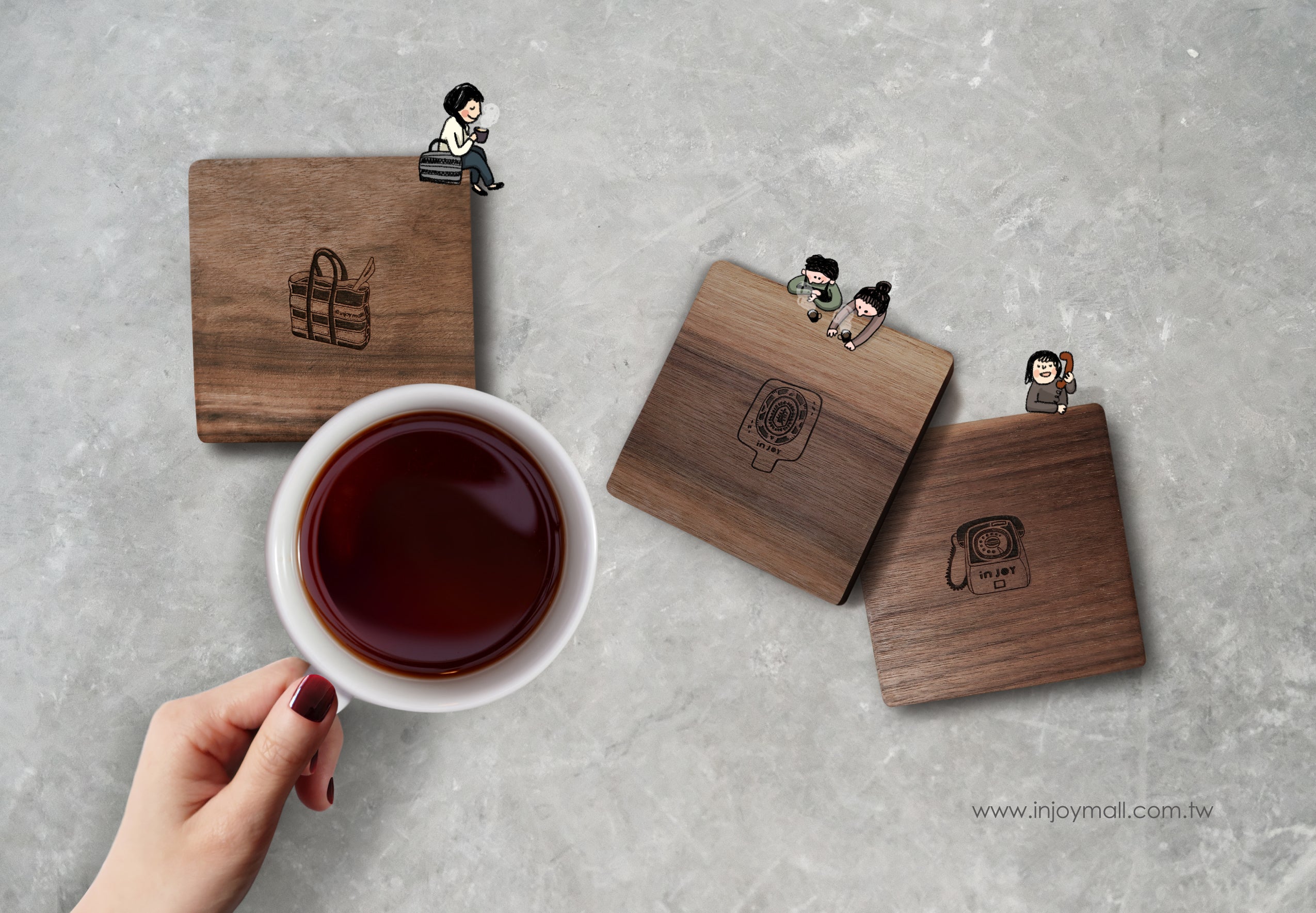 你喜歡喝茶嗎?「欣賞」一杯暖心茶,從茶倉倒出幾顆經過多次曬乾烘烤的茶葉,可以聽到茶葉在熱水中泡開的聲音。看著杯墊敘述著一個一個古早的故事。茶墊陳載著杯水蒸發的水珠,將茶香與木香散發復古氛圍。復刻回憶兒時點滴原木杯墊上的圖案,是台灣傳統物品的小插圖。