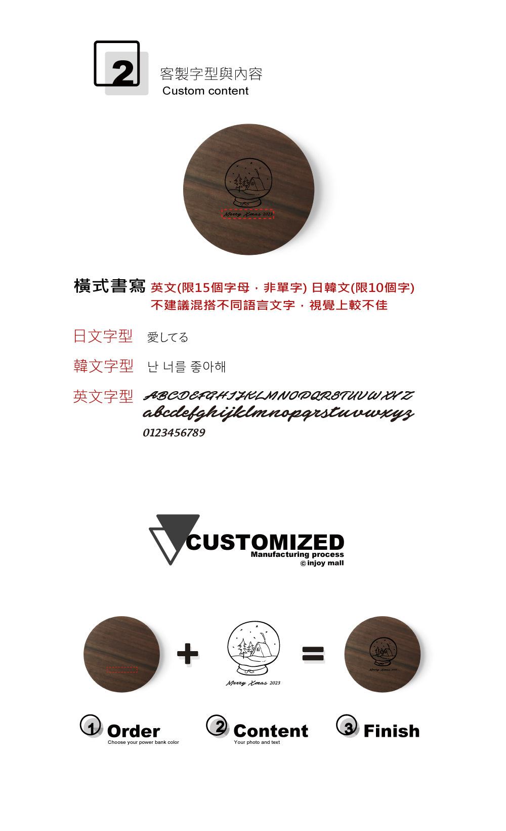 若客訂內容為日文/韓文,請在編輯器輸入"Other content",並在結帳時,於訂單備註欄位提供日文/韓文客訂內容,