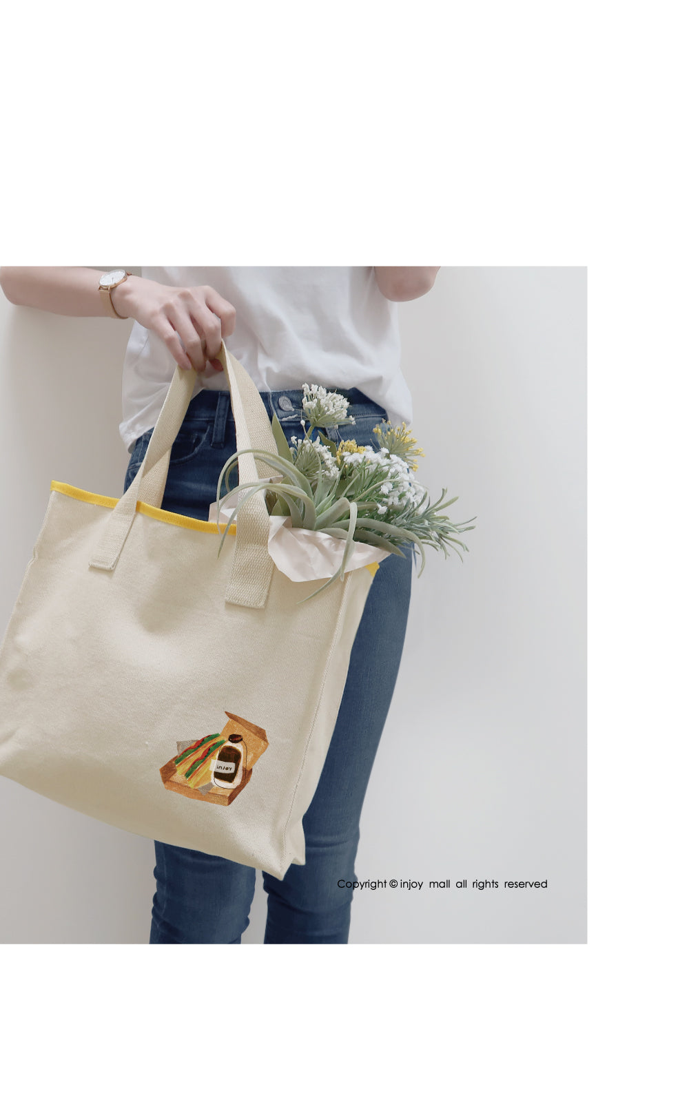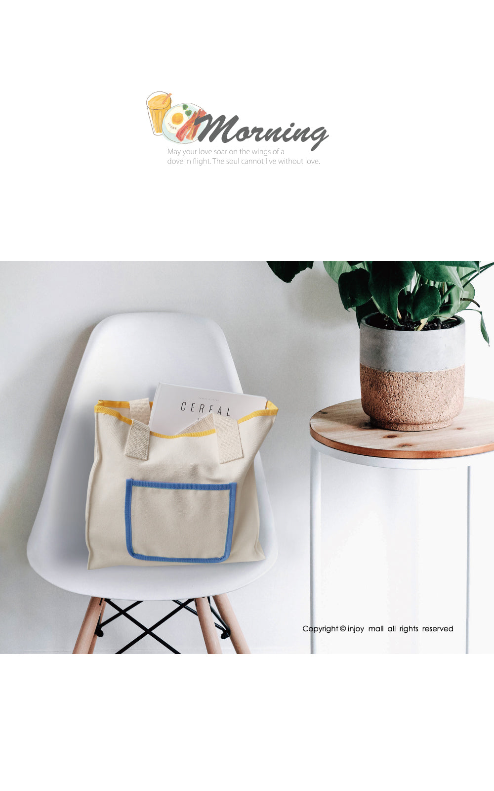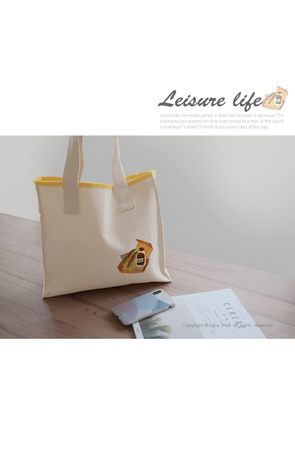 早安晨光 米白色 大方口 帆布包