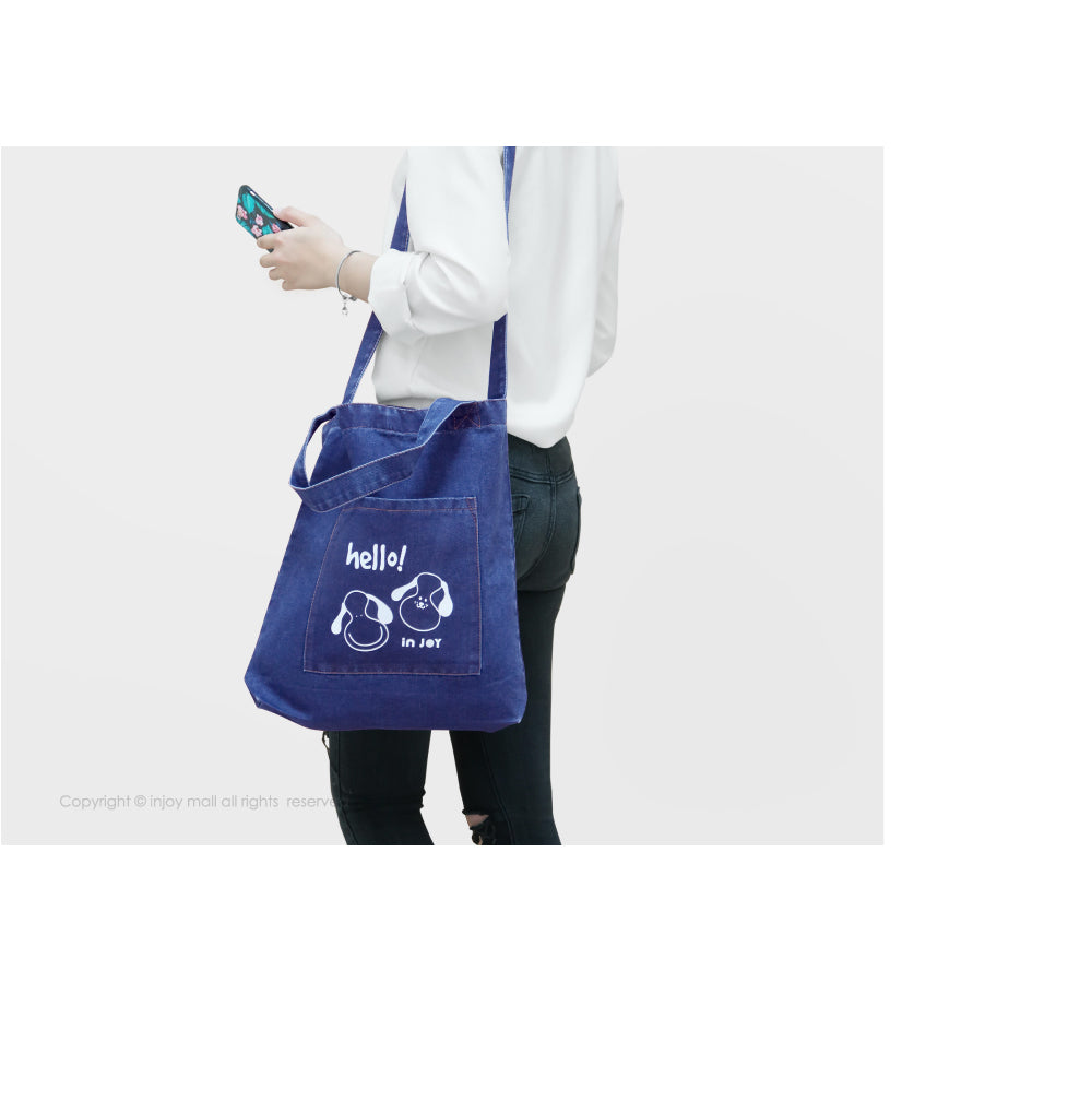 [樂活俏皮狗 單寧手提肩背二用包 / 收納包 ]