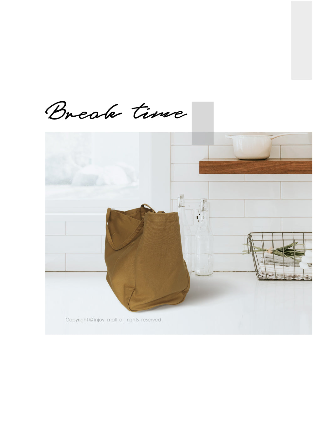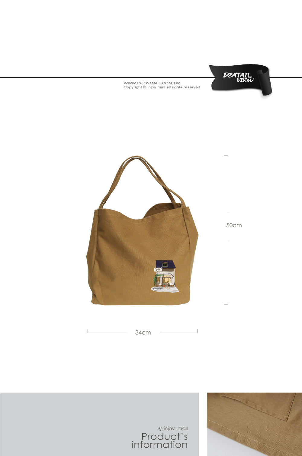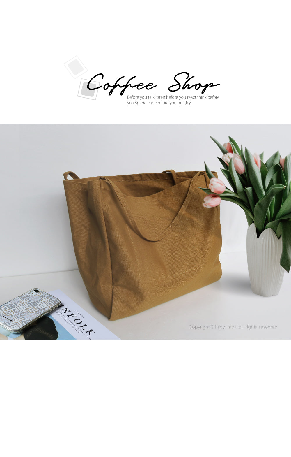 • Bonjour 咖啡店 卡其色 大方口 帆布包