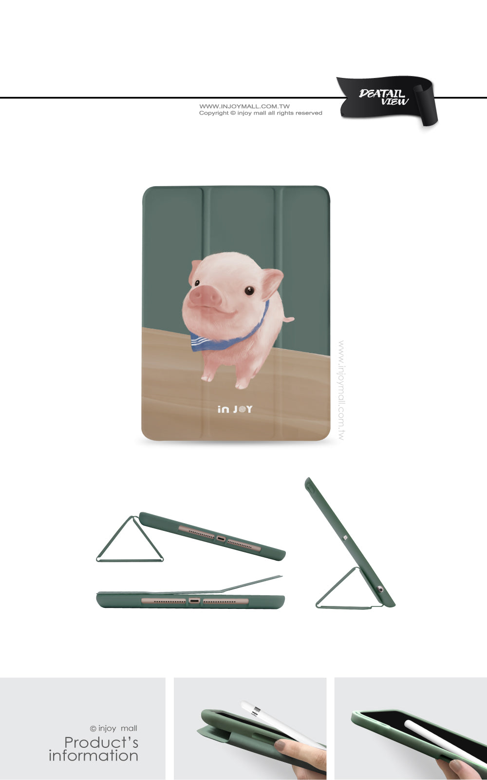 [ iPad case 12.9/Air4/iPad 9/mini 6 波波迷你豬 附筆槽平板保護套]