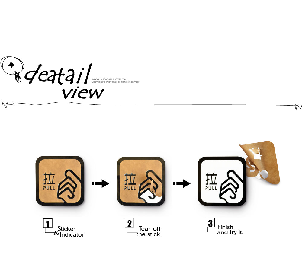 每個標示牌背面皆有黏貼雙面膠撕開即可貼覆在所屬牆面及門片裝飾