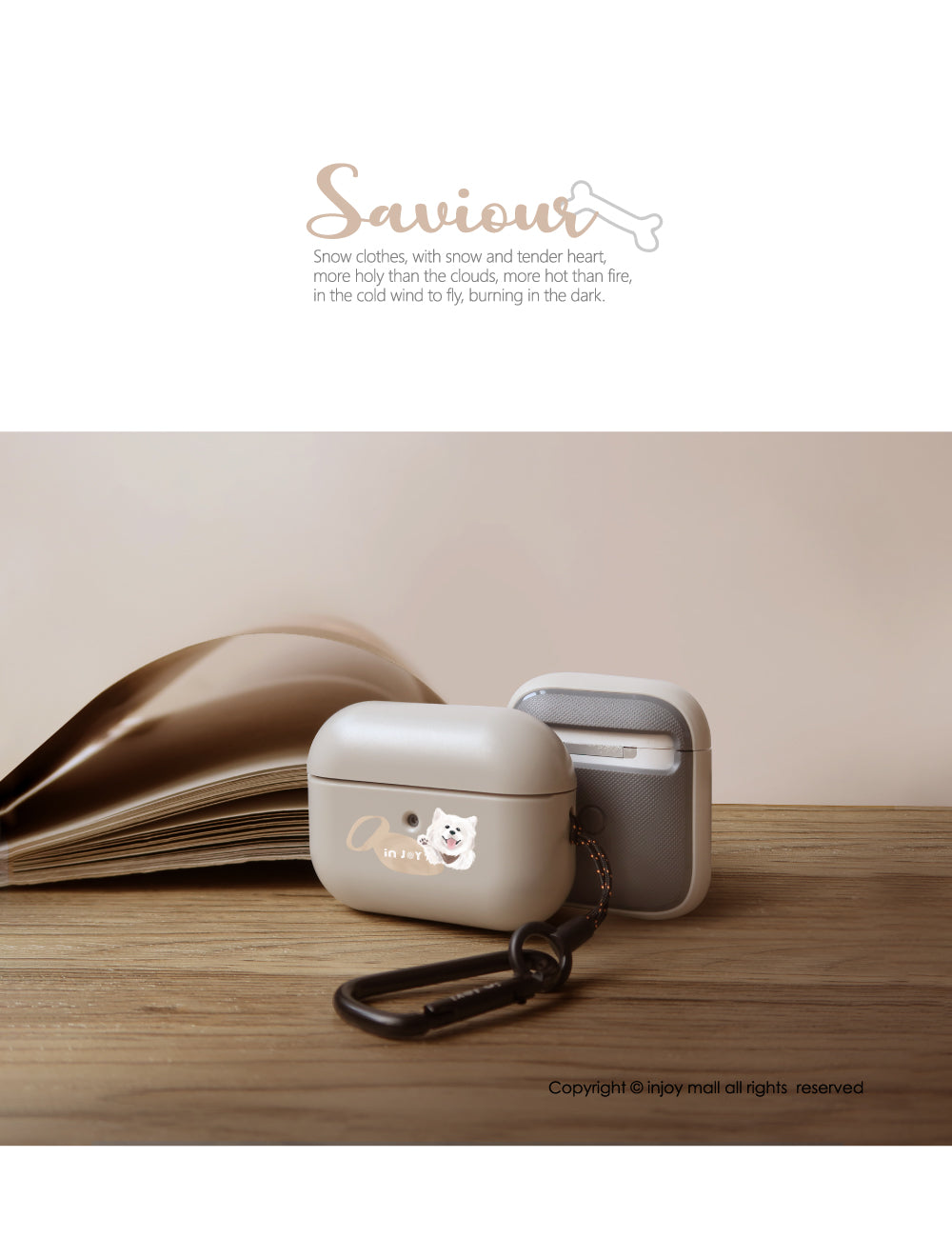 [ AirPods2/AirPods Pro/AirPods3/AirPods Pro 2 笑臉天使薩摩耶犬 防摔 耳機附掛勾保護套 ]