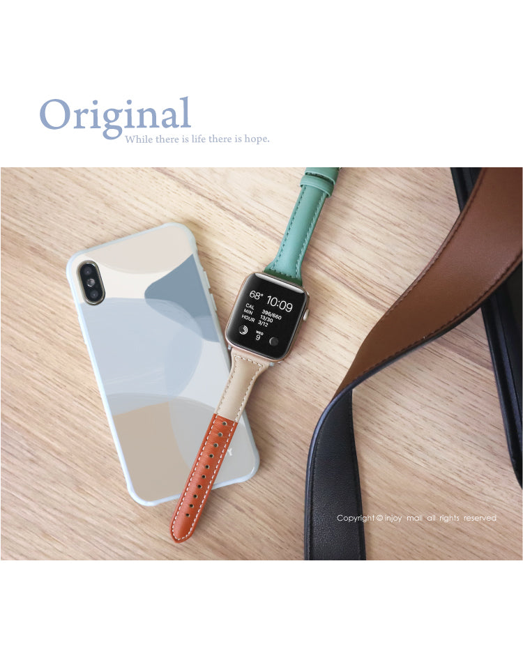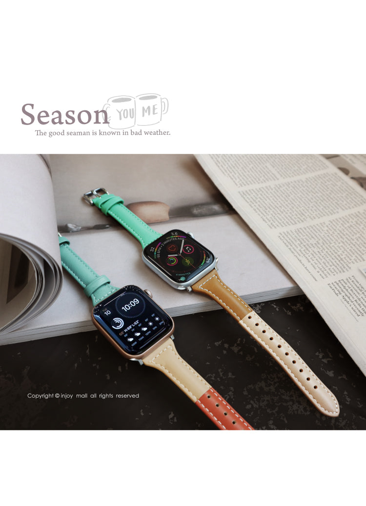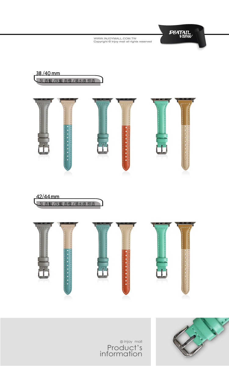 [Apple Watch series 1 2 3 4 5 6 7彩色拼接 真皮錶帶 ]