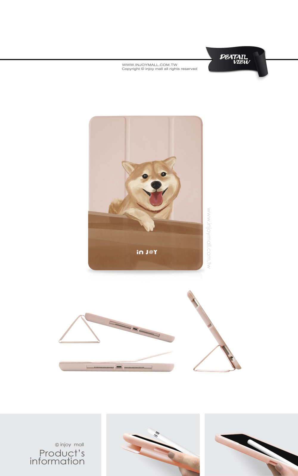 粉 / 一體成形 Smart cover case(附筆槽)