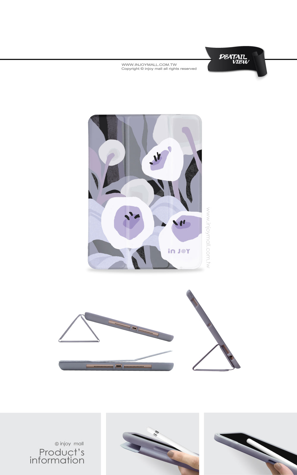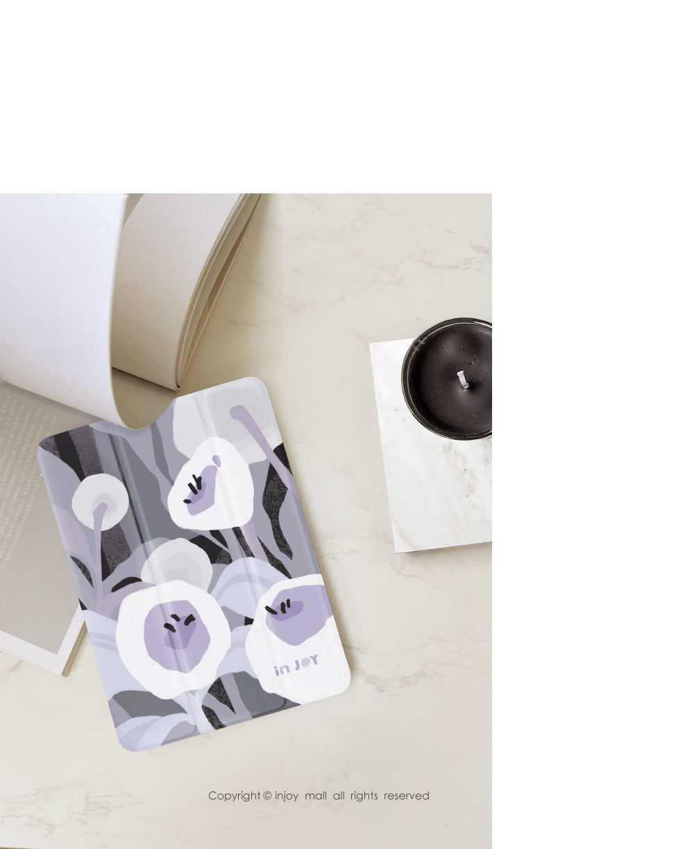[ iPad case 12.9/Air4/iPad 9/mini 6 迷情紫羅蘭附筆槽平板保護套 ]