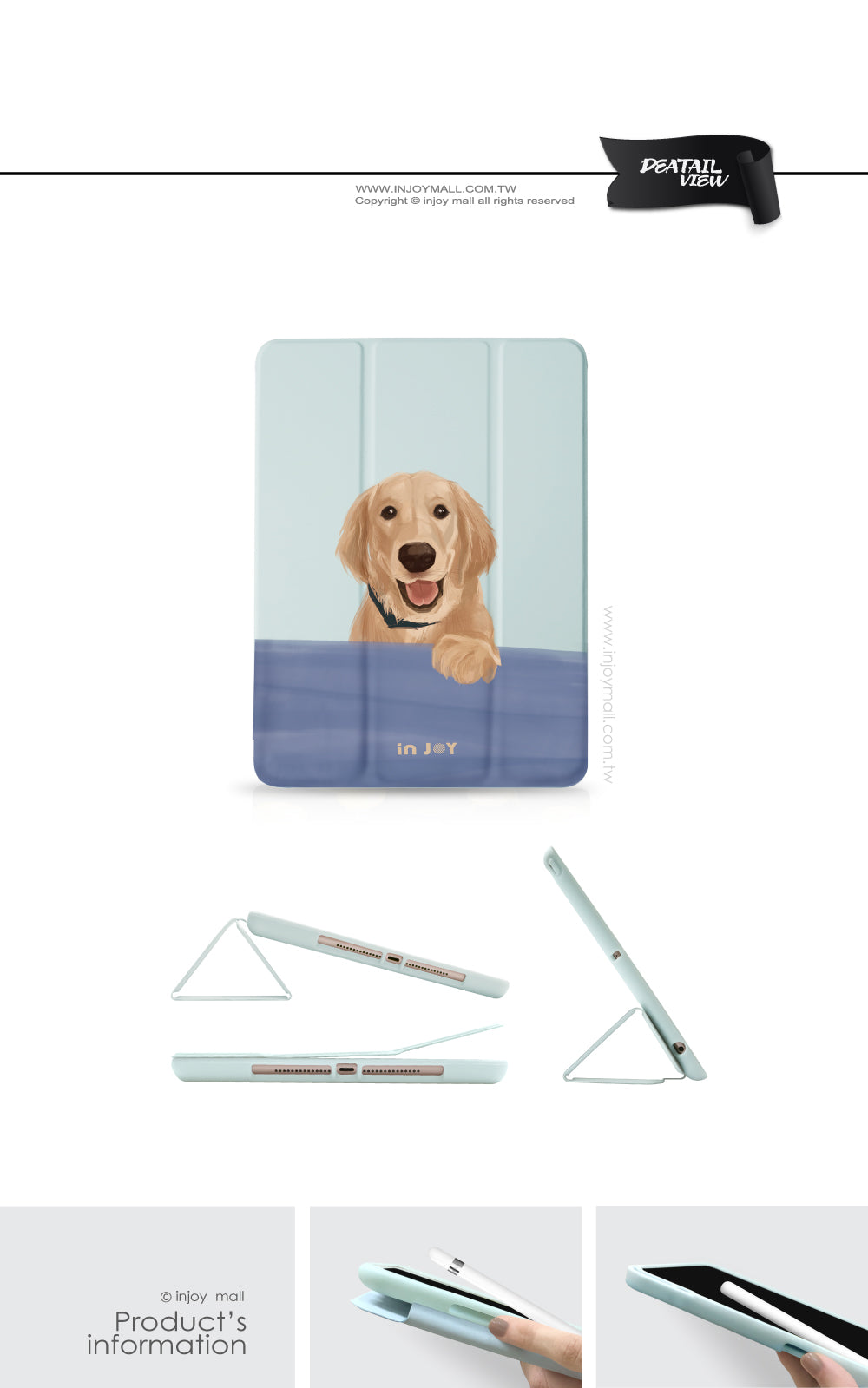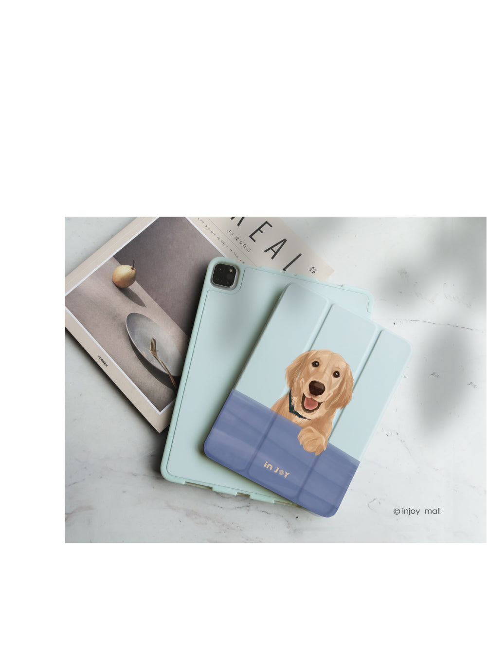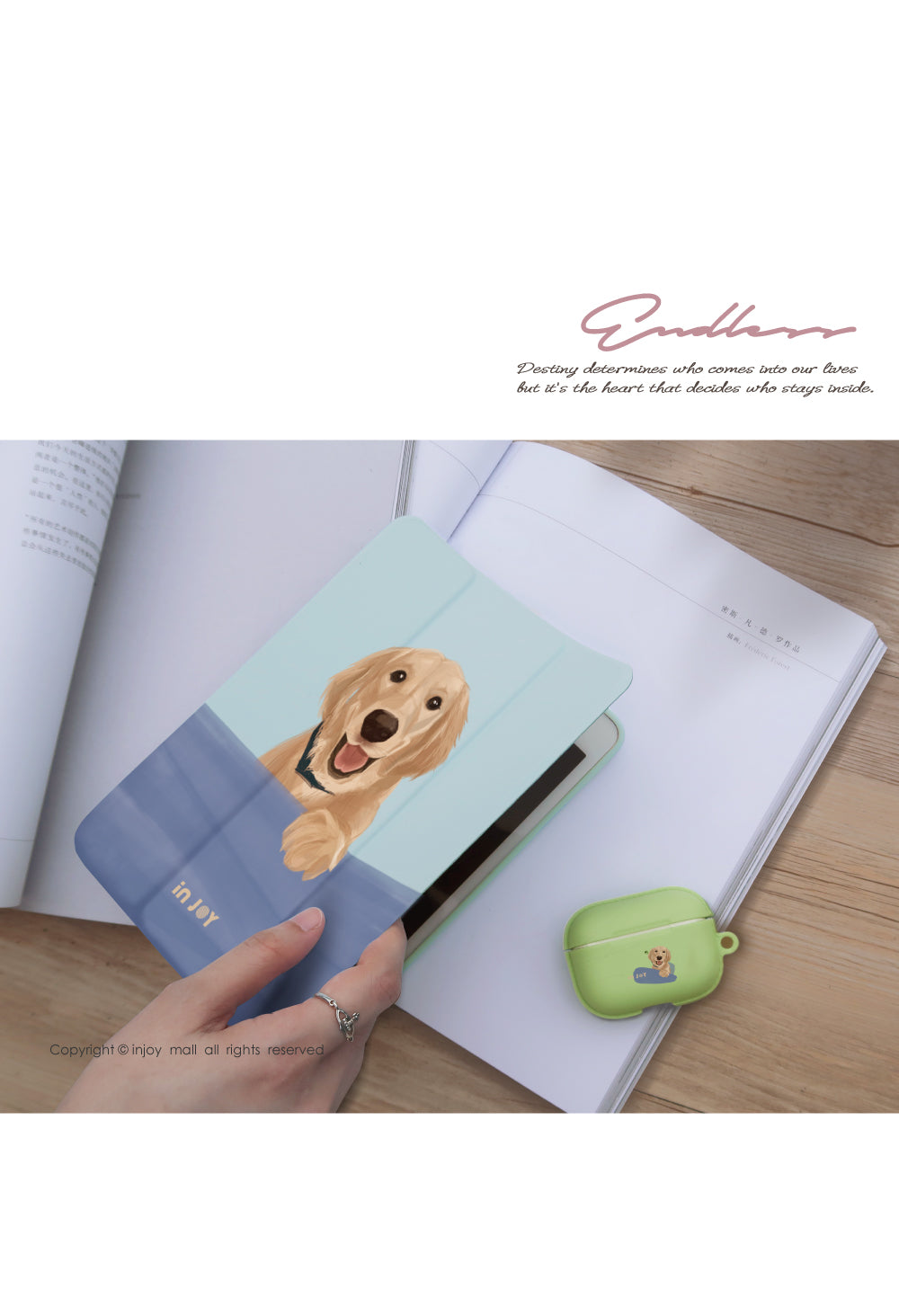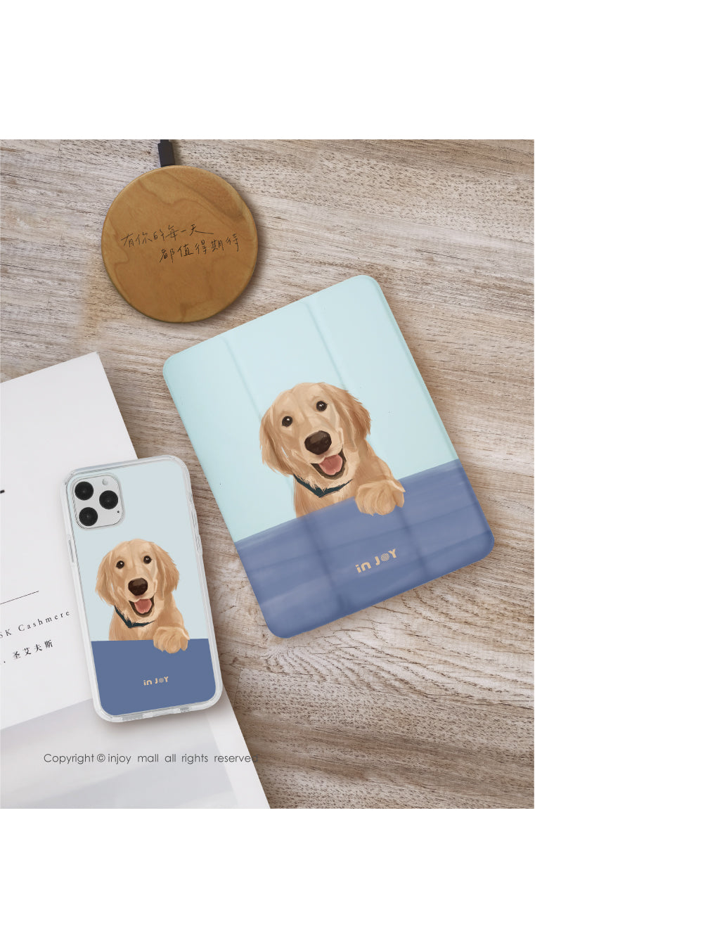 [ iPad 12.9/Air5/iPad 9/mini 6黑皮黃金獵犬附筆槽平板保護套]