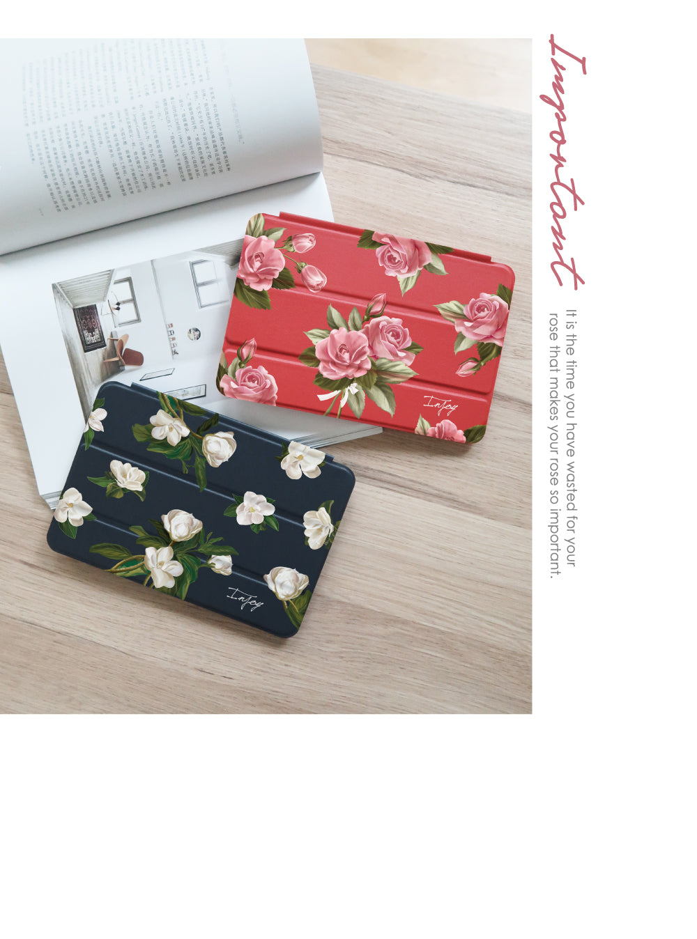 [iPad 12.9/Air5/iPad 8/mini 5系列 初戀粉玫瑰皮革平板保護套 ]