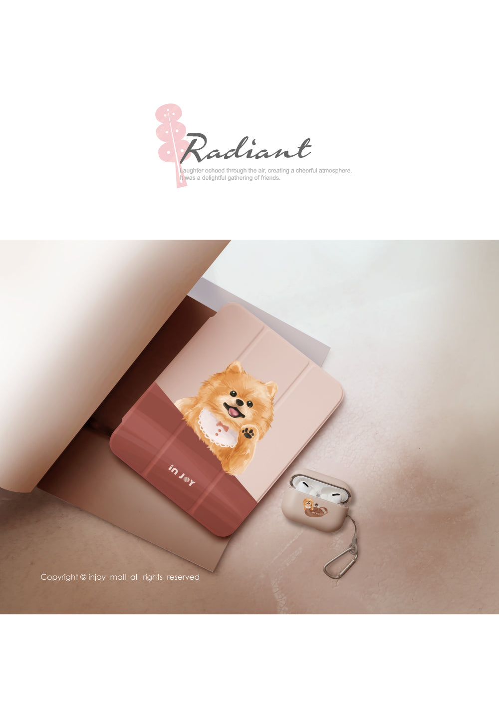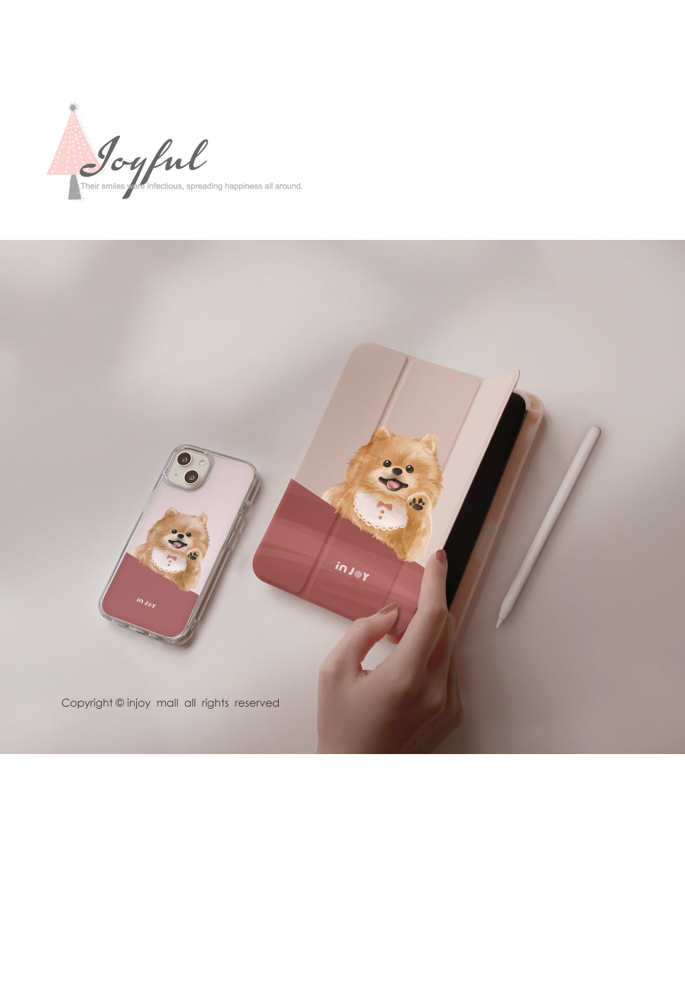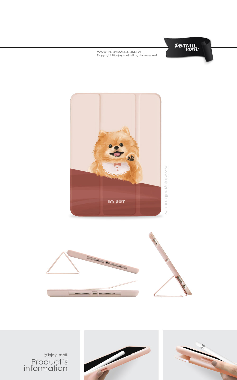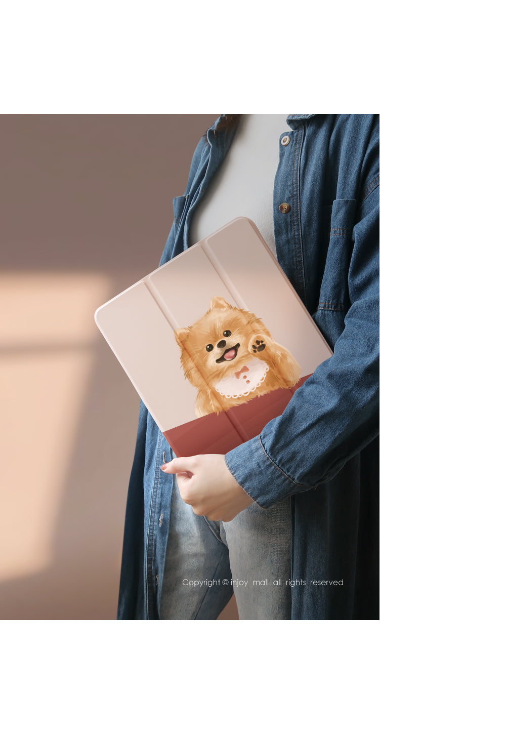 [iPad case 12.9/Air5/iPad 9/mini 6 輕快可愛博美犬 附筆槽平板保護套 ]