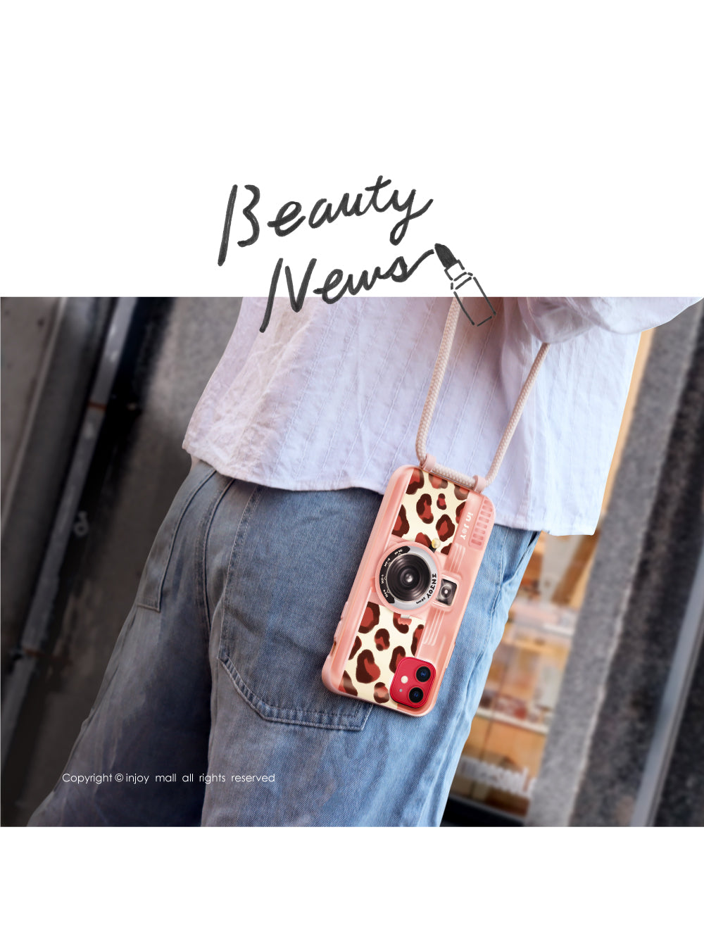[ iPhone 16/15/14/13/12/SE3 浪漫風豹相機 二合一防摔背繩手機殼 ]