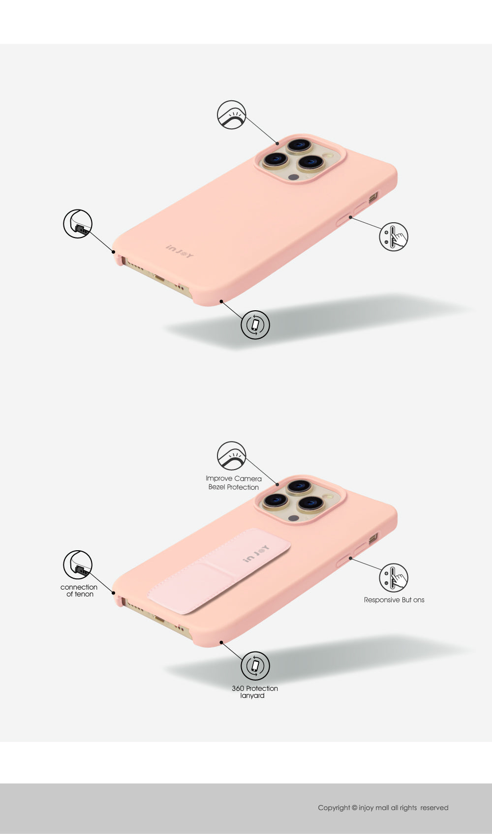 使用附支架款式時,若直式站立點擊螢幕時建議拿起手機,以防手機倒下。