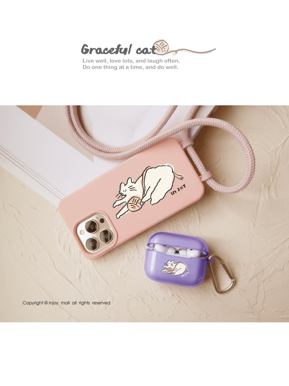 [ iPhone 16/15/14/13/12/SE3 老奶奶波斯貓 二合一防摔背繩手機殼 ]