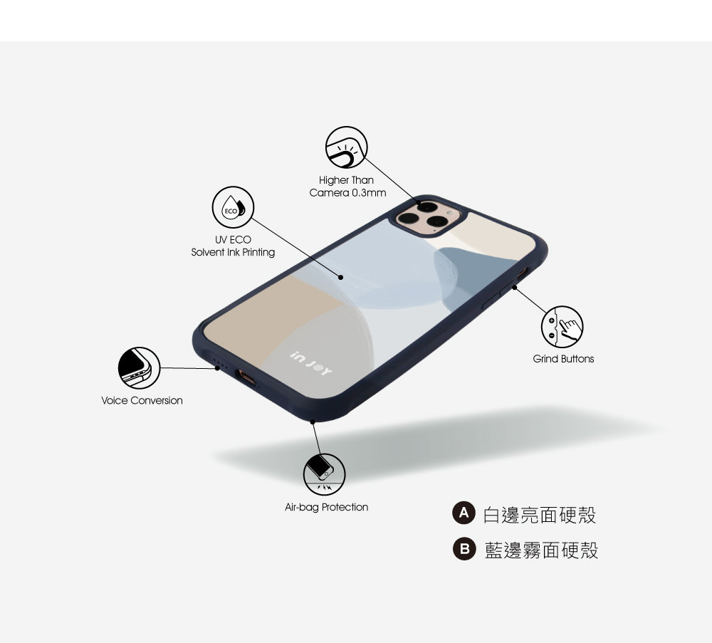 B款/藍邊霧面硬殼 (邊框厚度為0.28cm,邊角高於裸機螢幕約0.13cm)