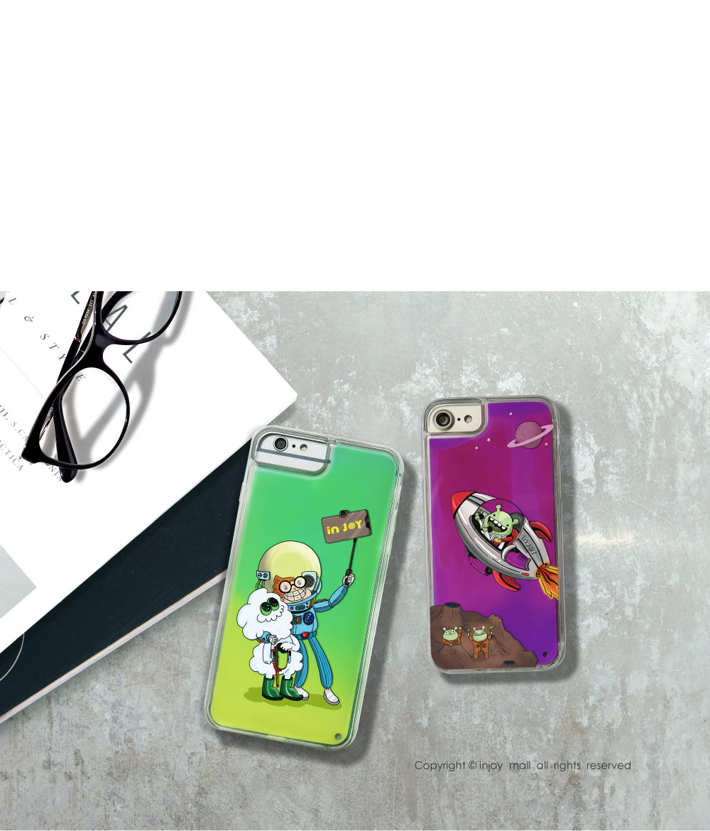 [iPhone 6/7/8/Plus/XS/XR/max/11pro/11max/SE2 外太空麻吉自拍 防摔 霓虹流沙殼]