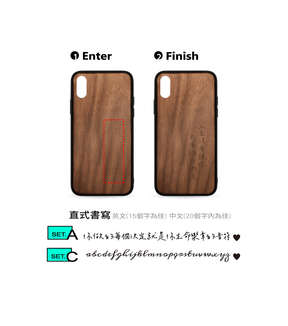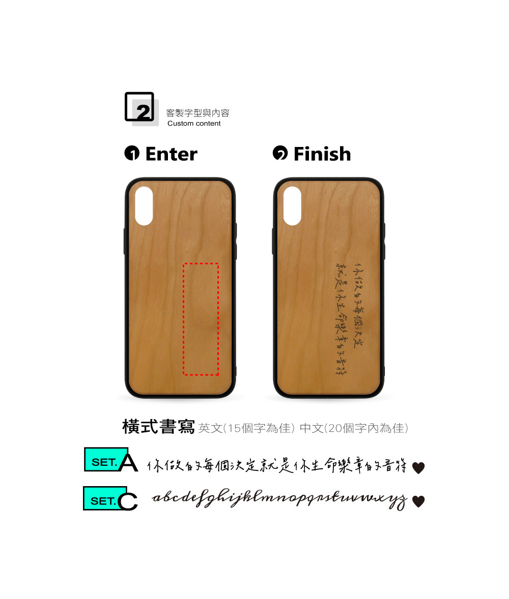 在心中永遠的靠岸。 我們用獨家有溫度的手寫字,每個手機殼都有獨特木紋, 可刻上名字或者一段文字,