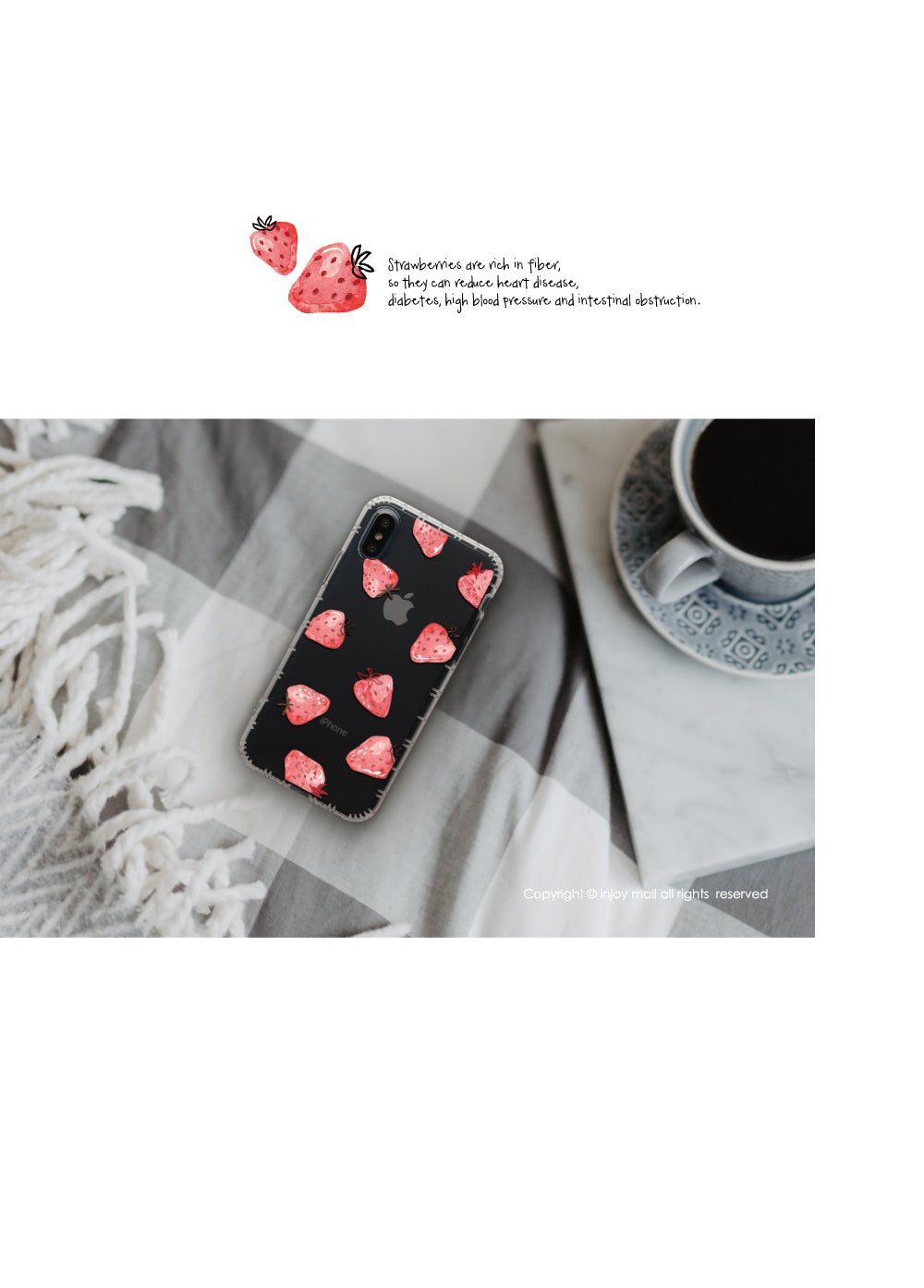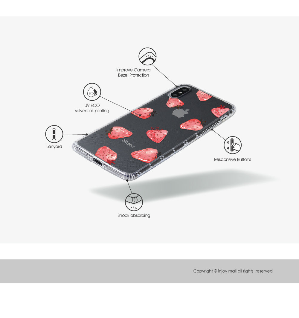 [ iPhone 13/13pro/12/11/SE3插畫風草莓防摔耐震亮面手機殼 ]
