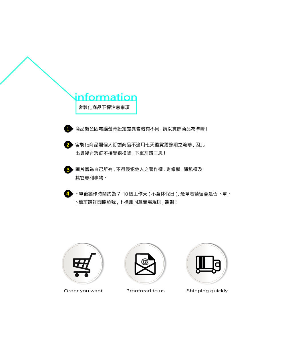 3.校稿圖完成後取消訂單會酌收200元,謝謝!