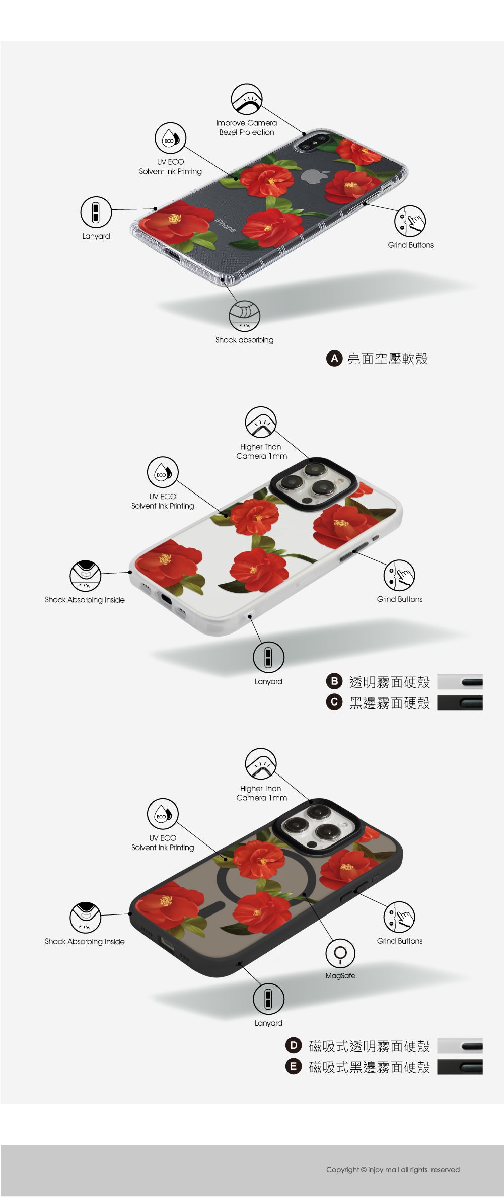 [ iPhone 16/15/14/13/12/11/SE3 優雅山茶花 防摔耐震亮面手機殼 ]