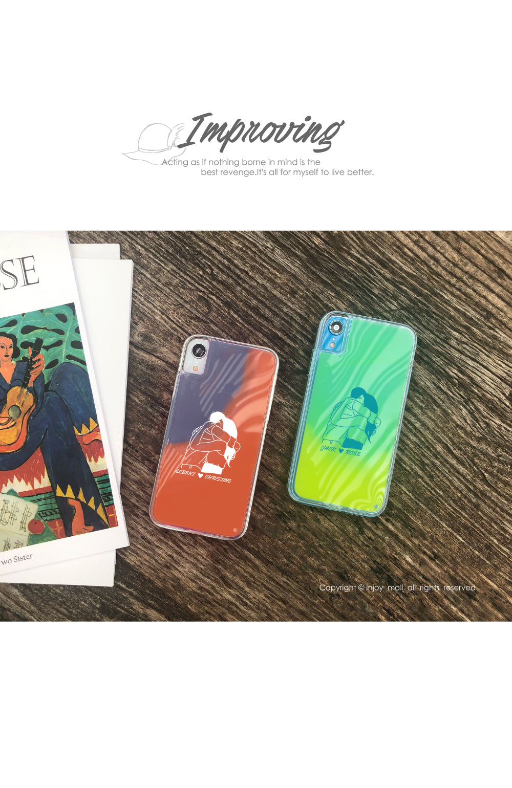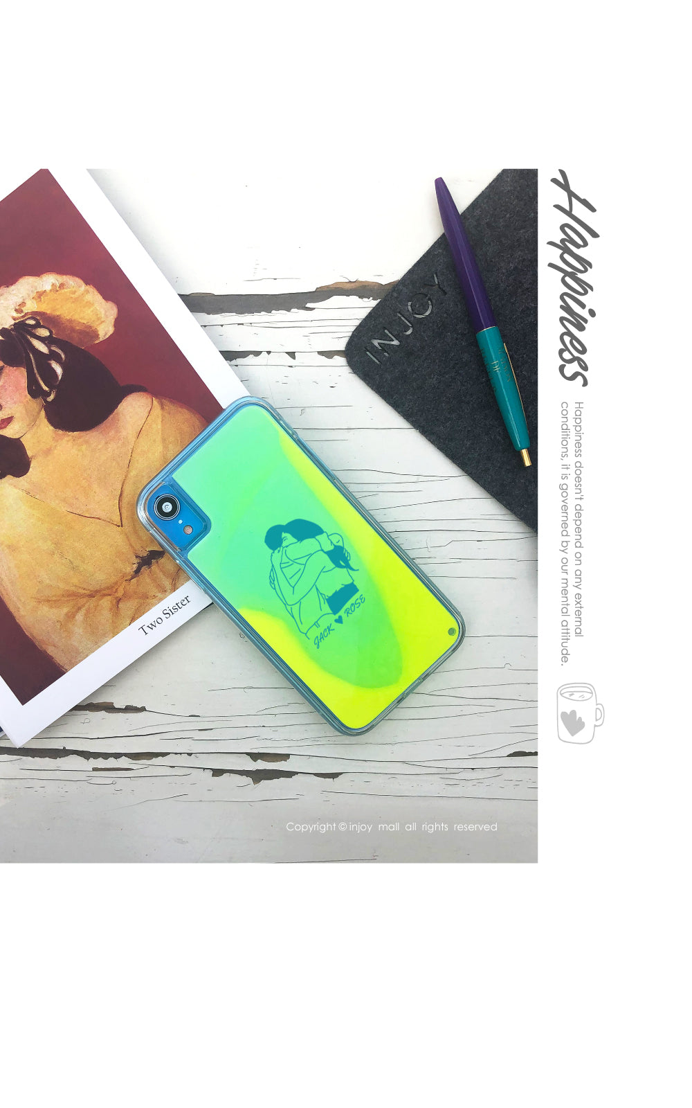 [iPhone XS/XR/max/11pro/11max/SE3客製化字母擁抱戀人霓虹流沙殼 ]