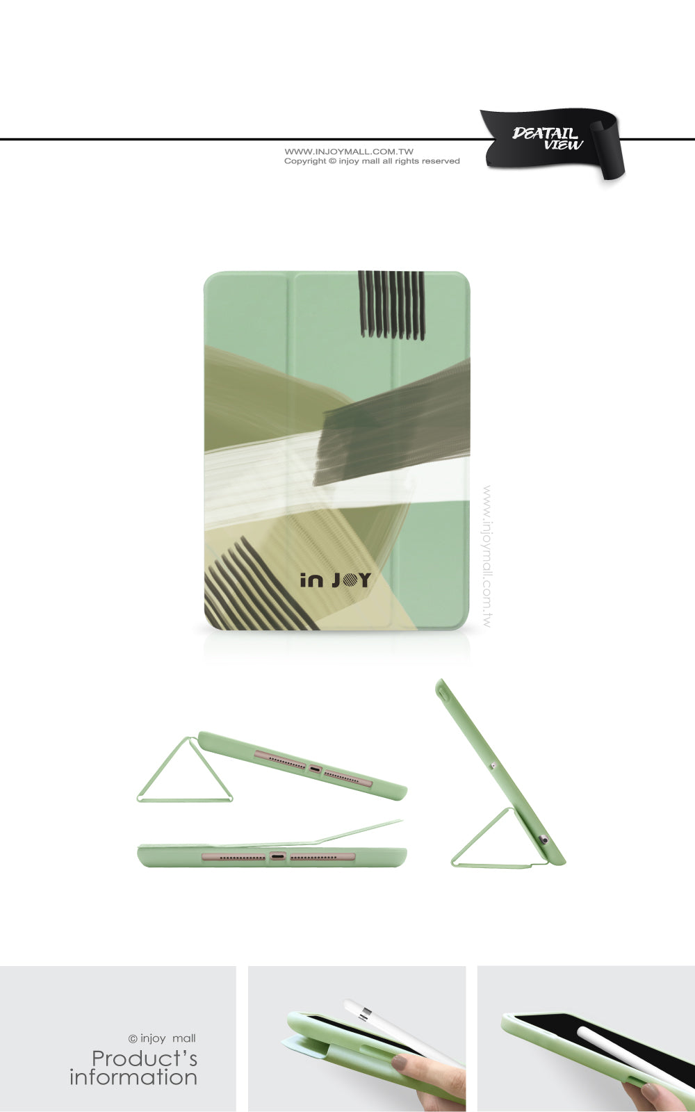 抹茶綠 / 一體成形 Smart cover case(附筆槽)